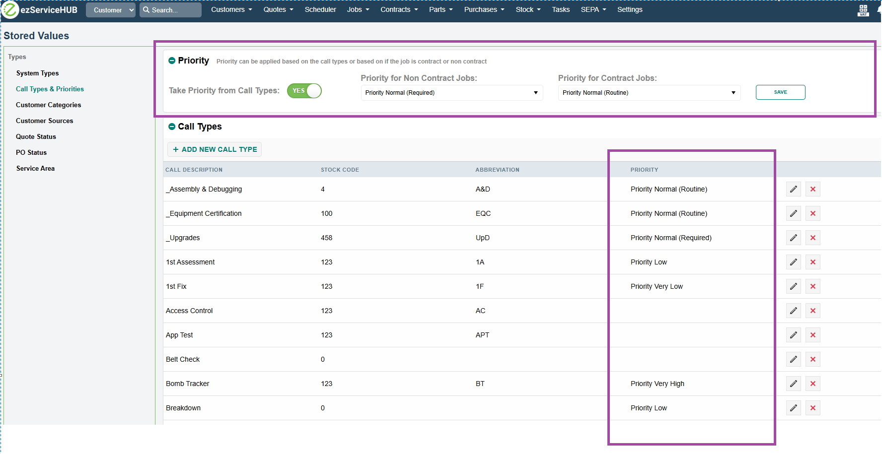 Also added an option to override the above configuration and set job priorities based on call types. If a priority is not configured for a call type, the job will inherit the priority from the contract/non-contract configuration.