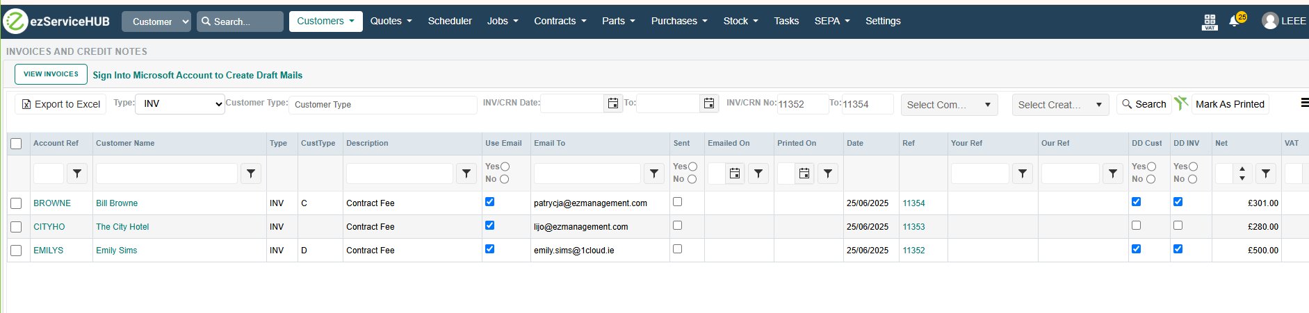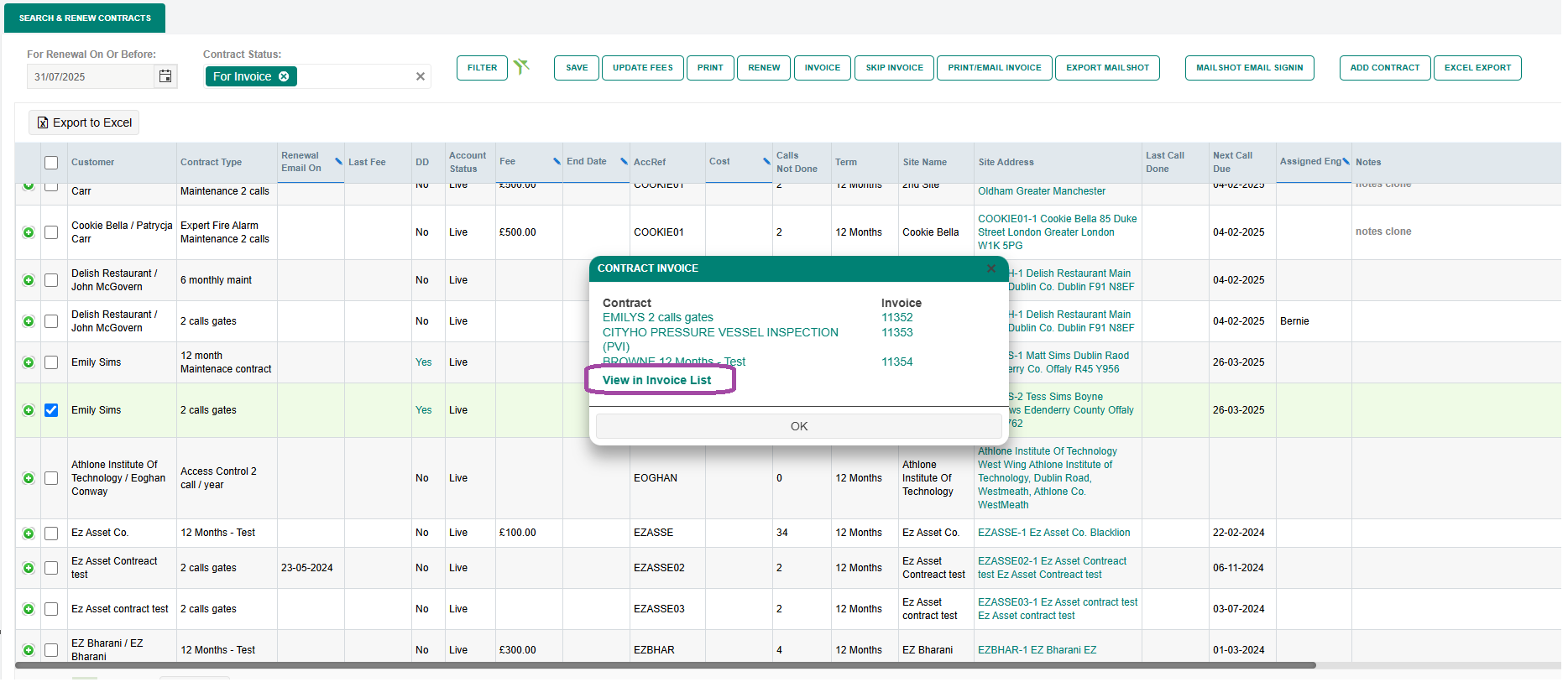 Contract Invoicing added the option view invoices in the Invoicelist screen