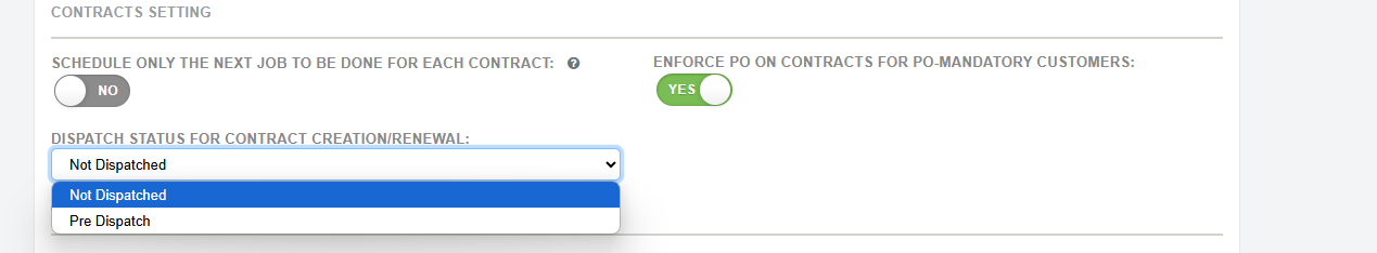 A customer-level setting has been added for contracts to define the job status for contract jobs. The default value will be ‘Not Dispatched’.