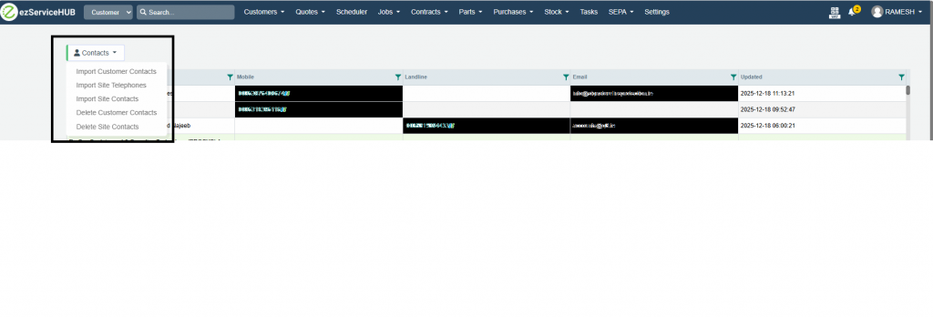 Export customer-level and site-level contacts from EZ directly to Nuacom