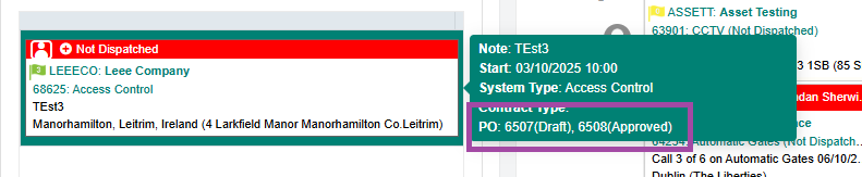 In the scheduler, if any PO is created for a job, the PO numbers and status will be shown on mouse hover.