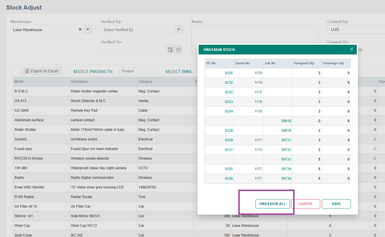 Added a button to unassign all stocks in the Unassign Stock window of the Stock Adjust screen.